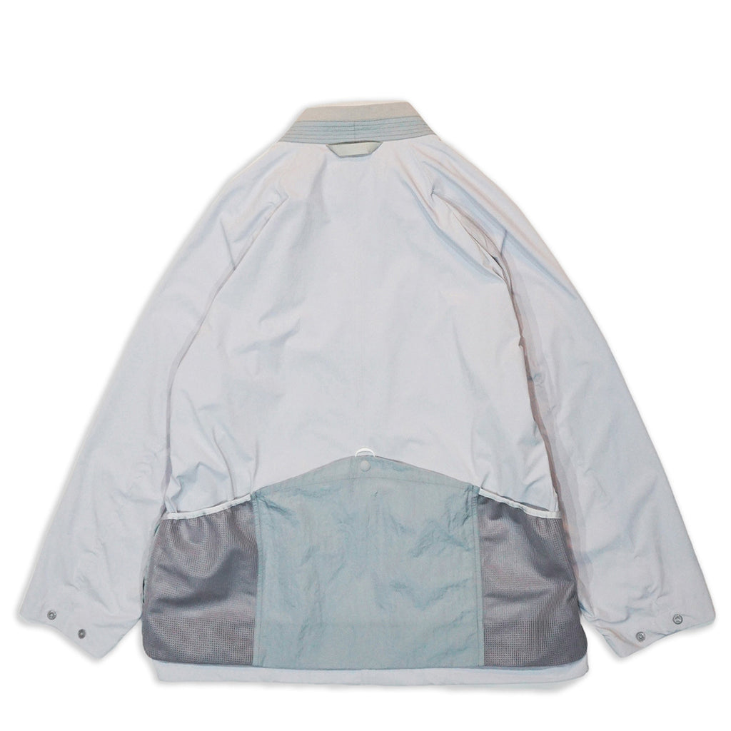撥水加工のライトウエイトなパウダータッチ4WAY ストレッチ素材をメインの生地に使用。襟、ポケットは塩縮ナイロンを補強のため使用。襟の首周りには、フライス素材を採用。後部には大容量の収納が可能なバックポケットを取り付けています。とにかく着心地と実用的な機能が魅力の仕上がりとなる作品です。
