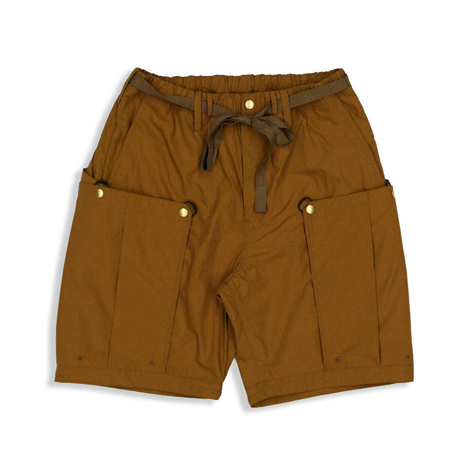 FIELD SHORTS was fully model changed. The front part of cargo pockets on the sides were able to fully open. The pockets were double structed to lay out the mesh pockets inside. When pulling waist tapes, only the back part was squeezed. Therefore, there is no extra wrinkles on the front part.
