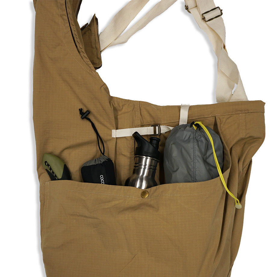 コーデュラのリップストップ生地を使用した、軽くて丈夫なアイテムです。前シーズンのLIGHT RIP OVERALLから、背面のベルト部分や裾幅に変更を加えアップデート。より使いやすい設計になっています。
