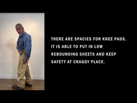 Light and tough item made by rip-stop fabric with Cordura. Bar tuckings of this item are all round shape as design accent. There are spacies for knee pads. It is able to put in low rebounding sheets and keep safety at craggy place.