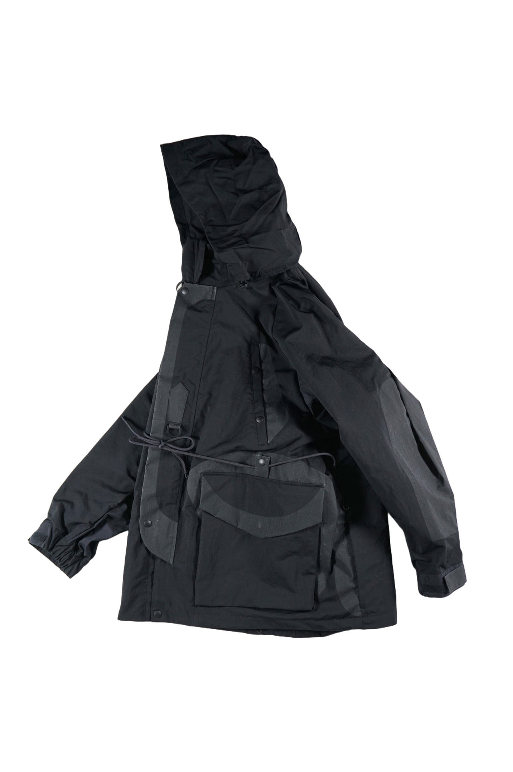 The main fabric of this parka is a durable water-repellent salt shrink nylon. There is a stand-up collar that can store hood, waist drawstring, game pocket at the back and suspenders, fully loaded function.The feature design point is clear rubber print for reinforcement.This lining free parka is suitable for all seasons.
